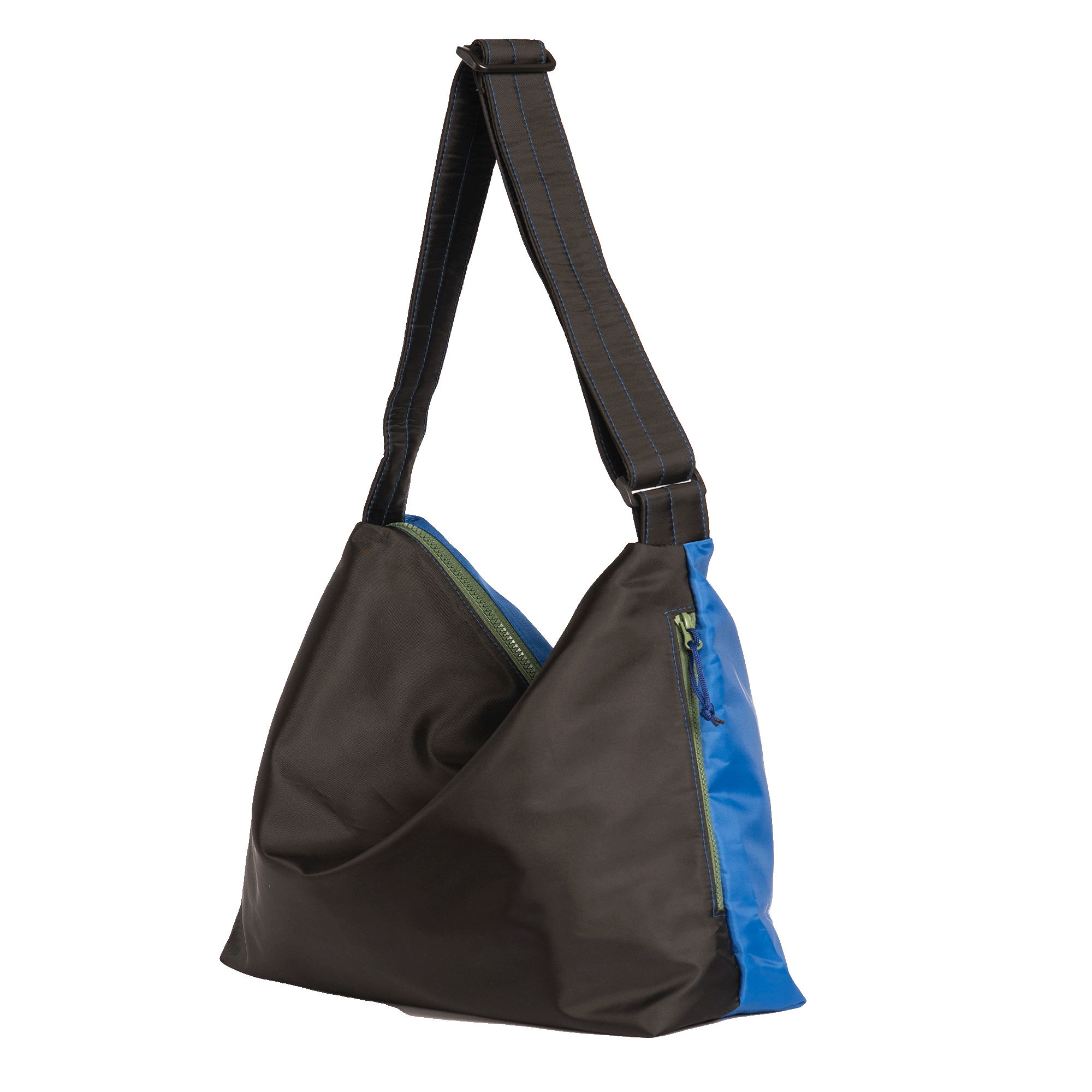 A Carryall bag made from tan nylon textile with water resistant lining. Main compartment with plastic zipper closure, inside zipped pocket, two open pockets and a removeable foam base. One outside zipper compartment with deep pockets for your essentials. Comes with a built-in adjustable body strap.