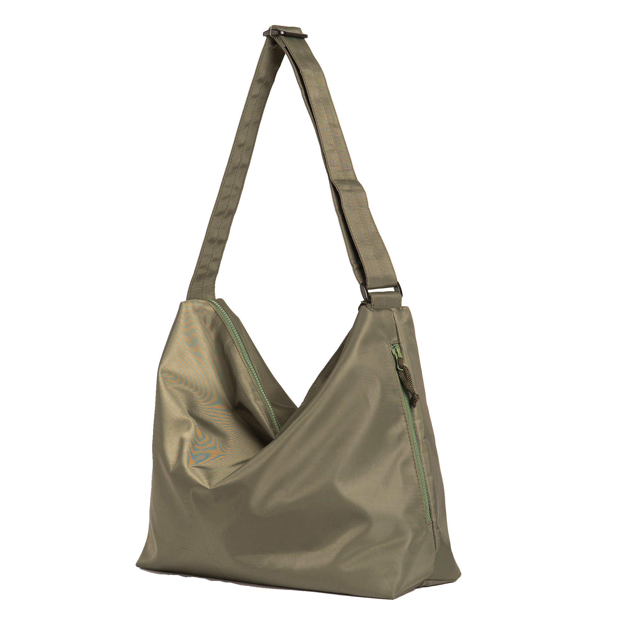A Carryall bag made from tan nylon textile with water resistant lining. Main compartment with plastic zipper closure, inside zipped pocket, two open pockets and a removeable foam base. One outside zipper compartment with deep pockets for your essentials. Comes with a built-in adjustable body strap.